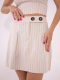 Saia curta com pregas frontais e cós com abotoamento duplo em botões diferenciados. Possui forro. A saia Alana tem padronagem risca de giz, confeccionada em tecido de poliéster, viscose e linho.